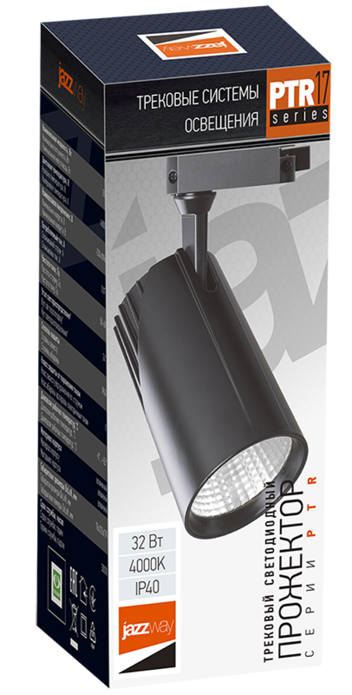 - Трековый светильник Jazzway PTR 1732 светодиодный, 32w 24°, 4000К, IP40 черный 86х136х195мм, 5015265 - 1шт.
