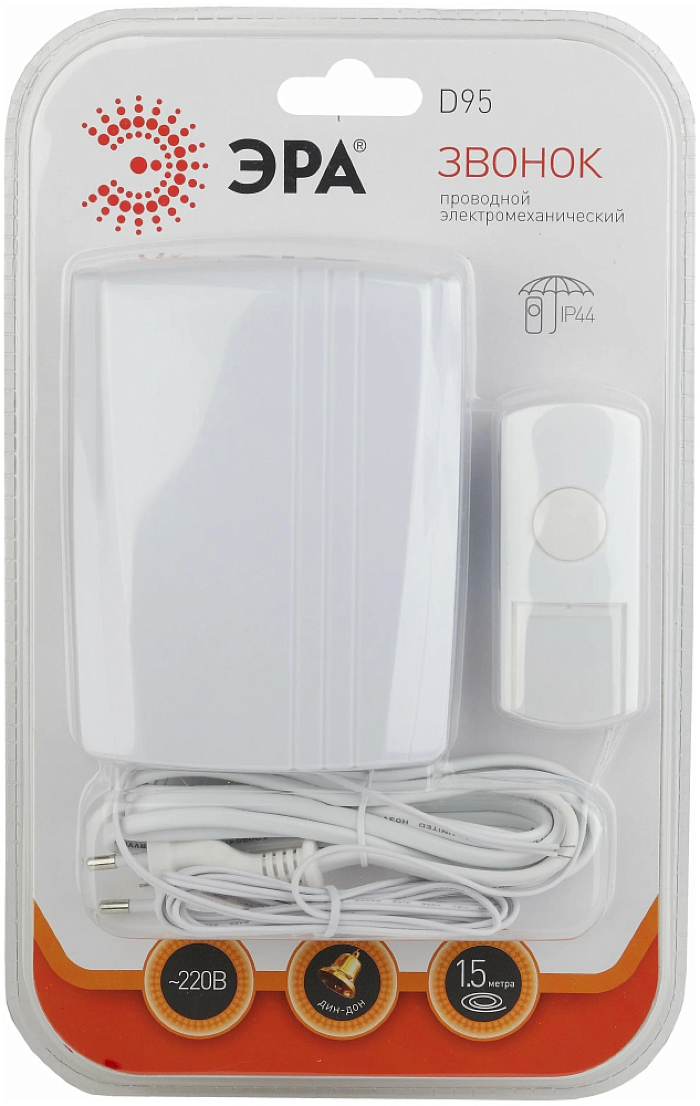 - Звонок дверной ЭРА D95 проводной, 1 мелодия, белый, IP44 - 1шт.
