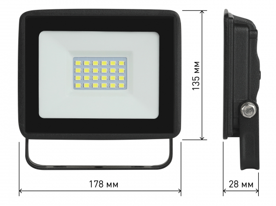 - Прожектор светодиодный ЭРА LPR-023-0-65K-030, 6500К 2400Лм 30Вт IP65, размер 135х38х178мм, черный Б0052023 - 1шт.