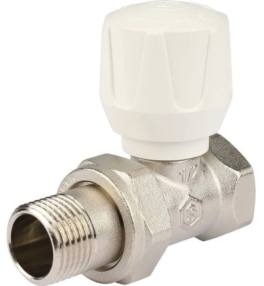 Радиаторный клапан Stout / Стаут прямой ручной терморегулирующий, из латуни, белый, резьба на входе 1/2дюйм / водоснабжение