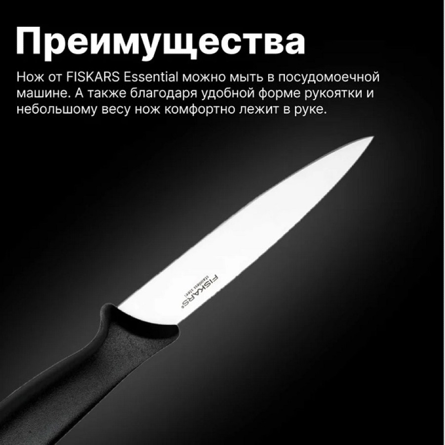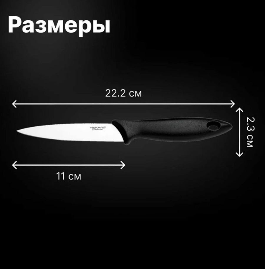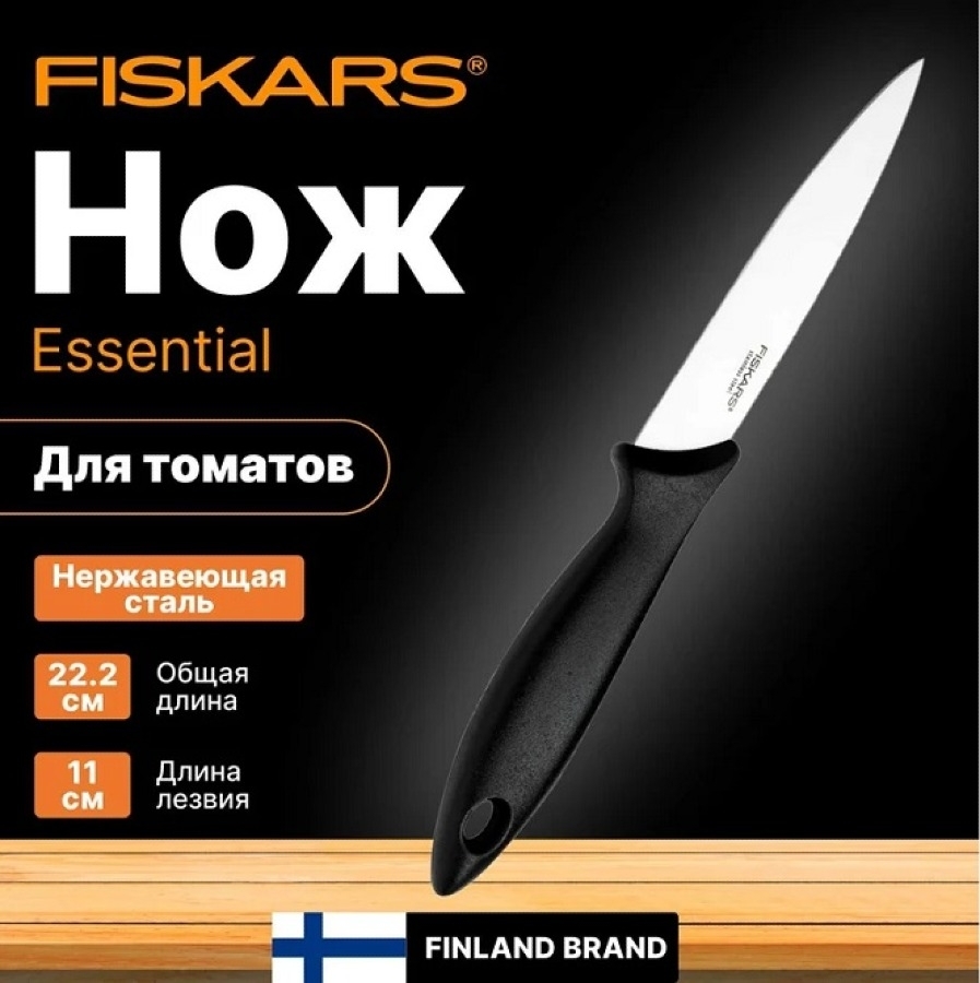 - Кухонный нож Fiskars Essential для корнеплодов из нержавеющей стали и пластика, лезвие 11см - 1шт.
