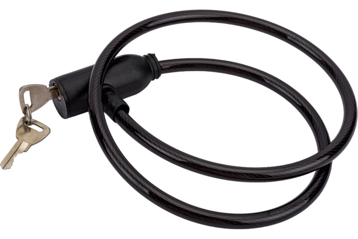Замок для велосипеда PARK / Парк тросовый, стальной с ПВХ оболочкой, черный, диаметр 8мм, длина 800мм / противоугонный трос