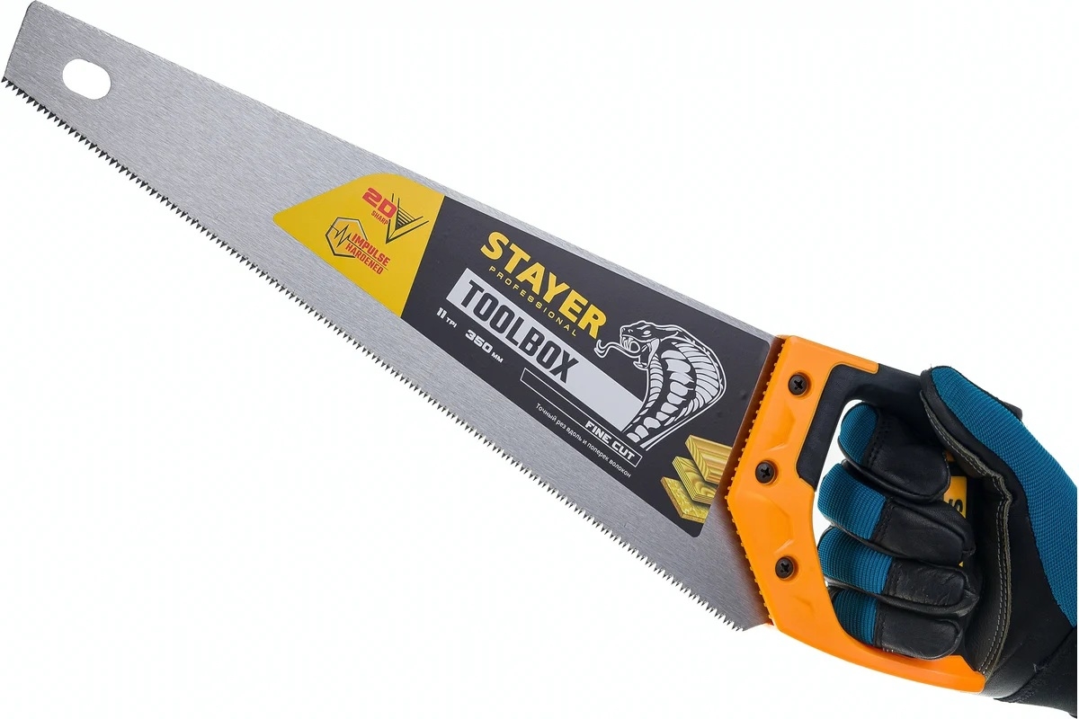 Ножовка по дереву Stayer / Стайер многоцелевая, с двухкомпонентной D-образной рукояткой, из стали, лезвие 350мм / ручной инструмент