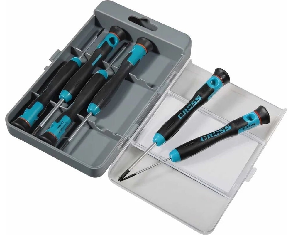 Набор отверток для точных работ GROSS станет незаменимым помощником в мастерской или дома. Сбалансированная комплектация и качественные материалы гарантируют готовность к выполнению самых тонких монтажных операций.