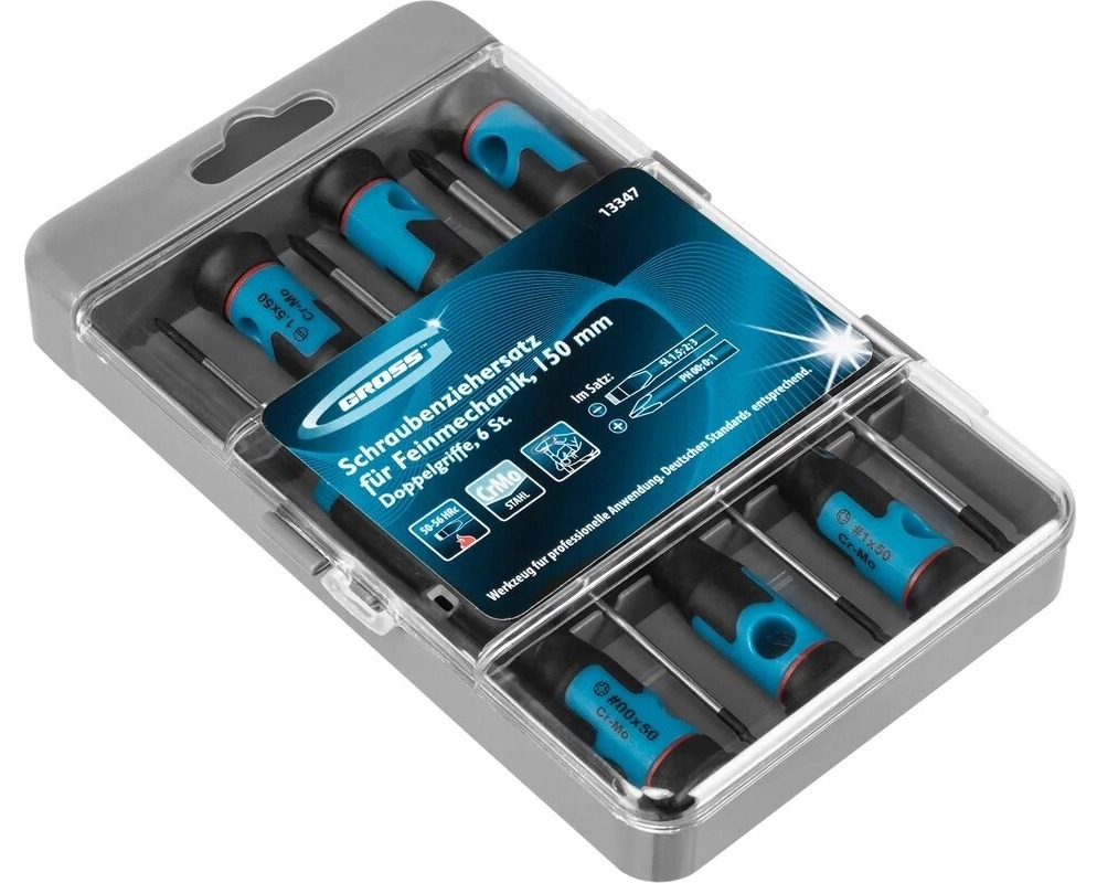 Набор отверток для точной механики 150 мм GROSS 13347 используется для работ с мелкими деталями, а также для точных механических работ.