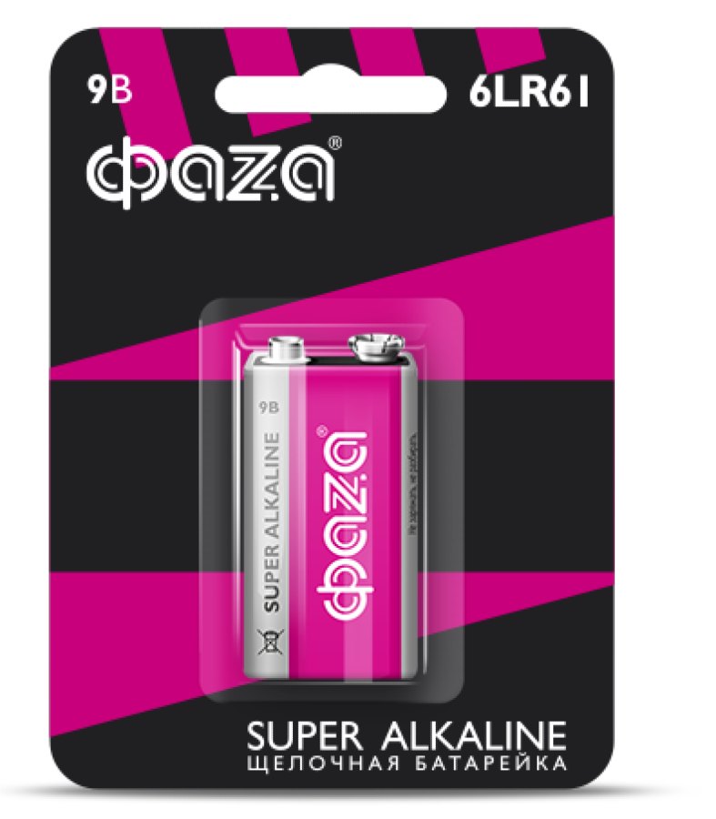 - Батарейки кроны Фаzа Super Alkaline 6LR61SA-B1 щелочная 9В, 2858412, 1шт. - 1шт.