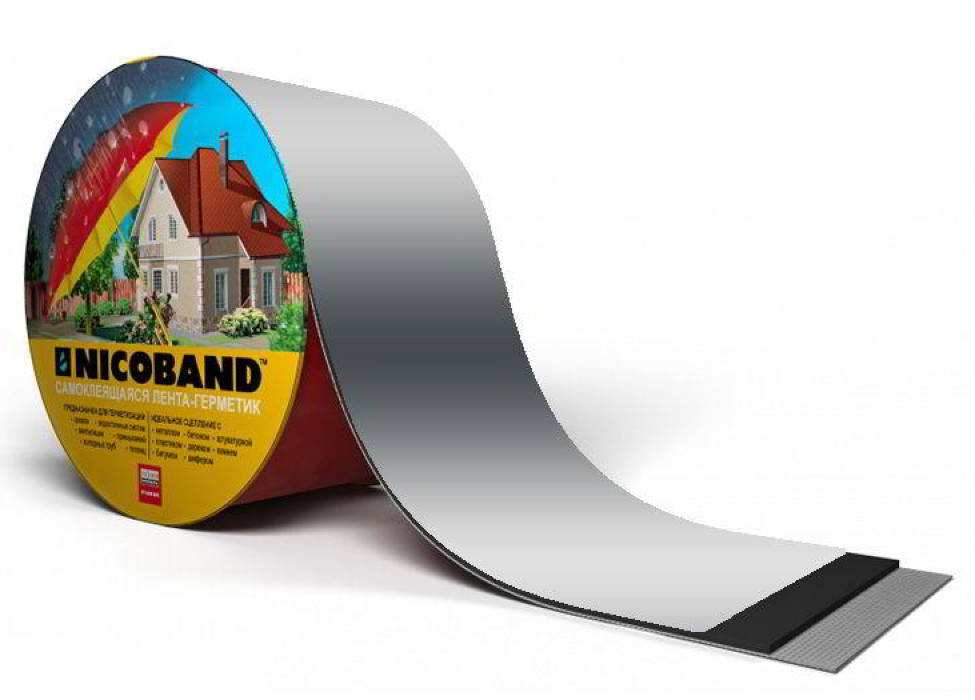- Лента гидроизоляционная Nicoband самоклеящаяся герметизирующая, битумно-полимерная, серебристая, ширина 10см, 10м - 1шт.