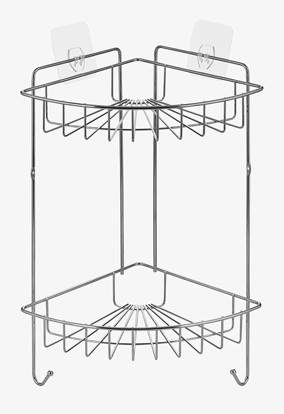 Стальная двухъярусная угловая полка «Гурт». Идет в комплекте с двумя видами креплений — липучка и саморезы. Полка оснащена двумя крючками, которые можно использовать для полотенец, мочалок и других ванных принадлежностей. Обладает уникальным гальваническим покрытием, усиливающим антикоррозийные свойства и препятствующим появлению ржавчины. Защищено от ржавчины уникальным покрытием. Никелевое покрытие используется в различных отраслях промышленности, включая авиационную, электронную, медицинскую и многие другие. Нанесение на детали двигателей, корпуса самолетов, медицинское оборудование придает им стойкий антикоррозийный эффект.