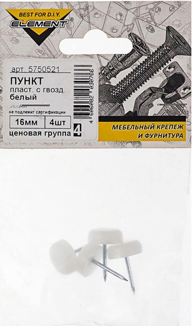 Накладки на ножки мебели Element / Элемент с гвоздем, пластиковые, белые, размером 17мм, в упаковке 4шт. / товары для домаАрт. 16656В наличии24 ₽/шт -