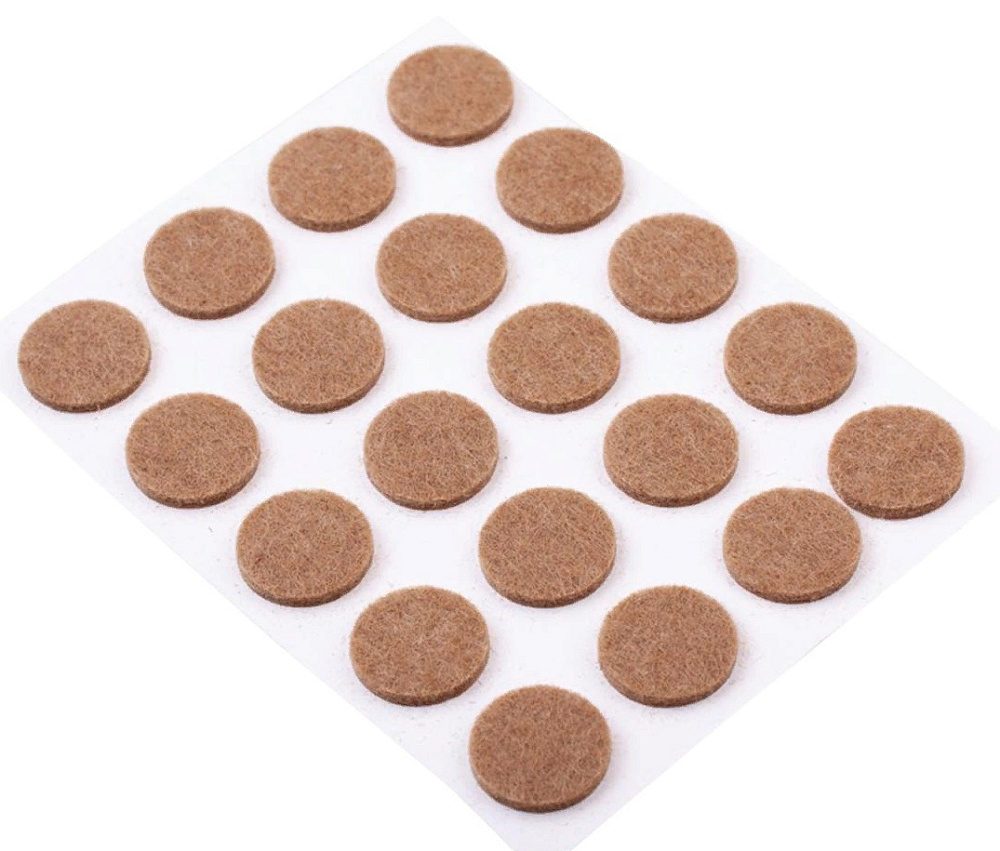 Пункты-самоклейки предназначены для закрепления на ножках мебели. Благодаря им можно защитить напольное покрытие (линолеум, паркет и ламинат, мрамор, натуральный камень) от повреждений, сохранив его целостность. Также пункты используются для того, чтобы приглушить звук во время перестановки мебели. Материал изготовления фетр. Цвет темный.