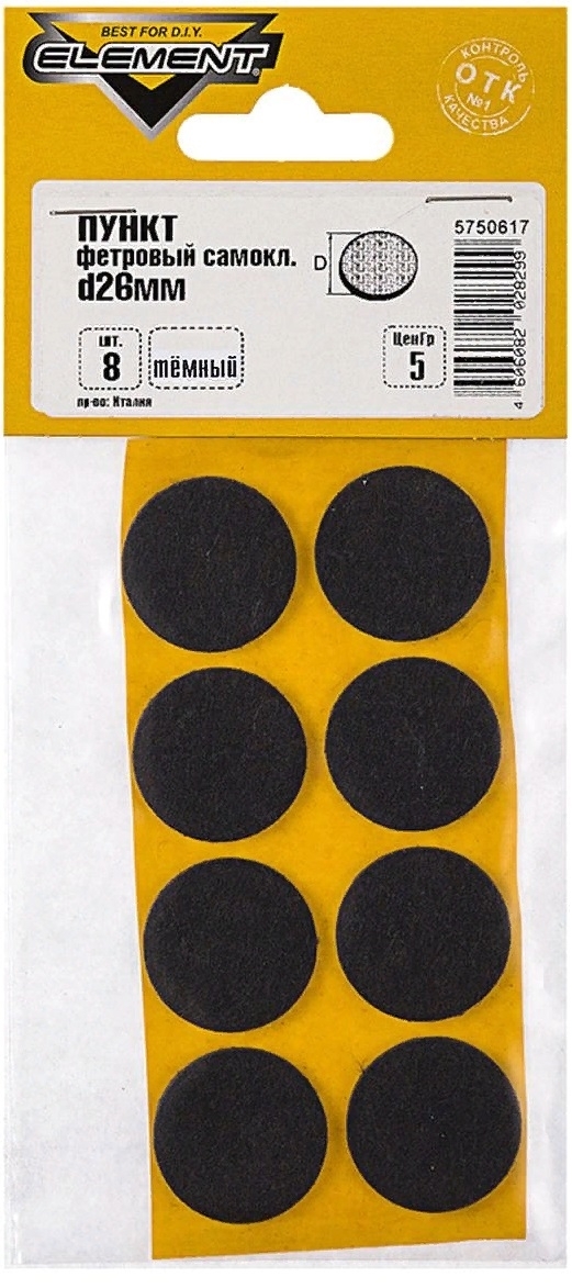 Накладки на ножки мебели Element / Элемент самоклеящиеся, фетровые, черные, размером 26мм, в упаковке 8шт. / товары для дома