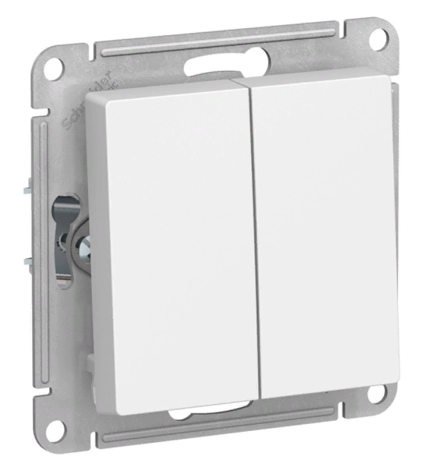 Двухклавишный выключатель Systeme Electric AtlasDesign представлен в белом цвете, он идеально впишется в любой интерьер.