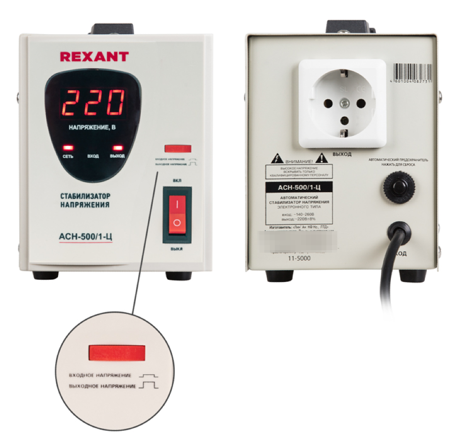 Стабилизатор напряжения однофазный REXANT АСН-500/1-Ц простой и удобный в использовании.