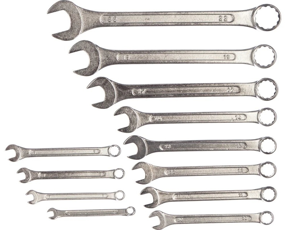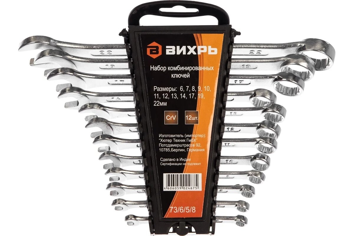 Набор ключей комбинированных ВИХРЬ из стали CrV, размер 6-22мм, 12шт. / инструменты