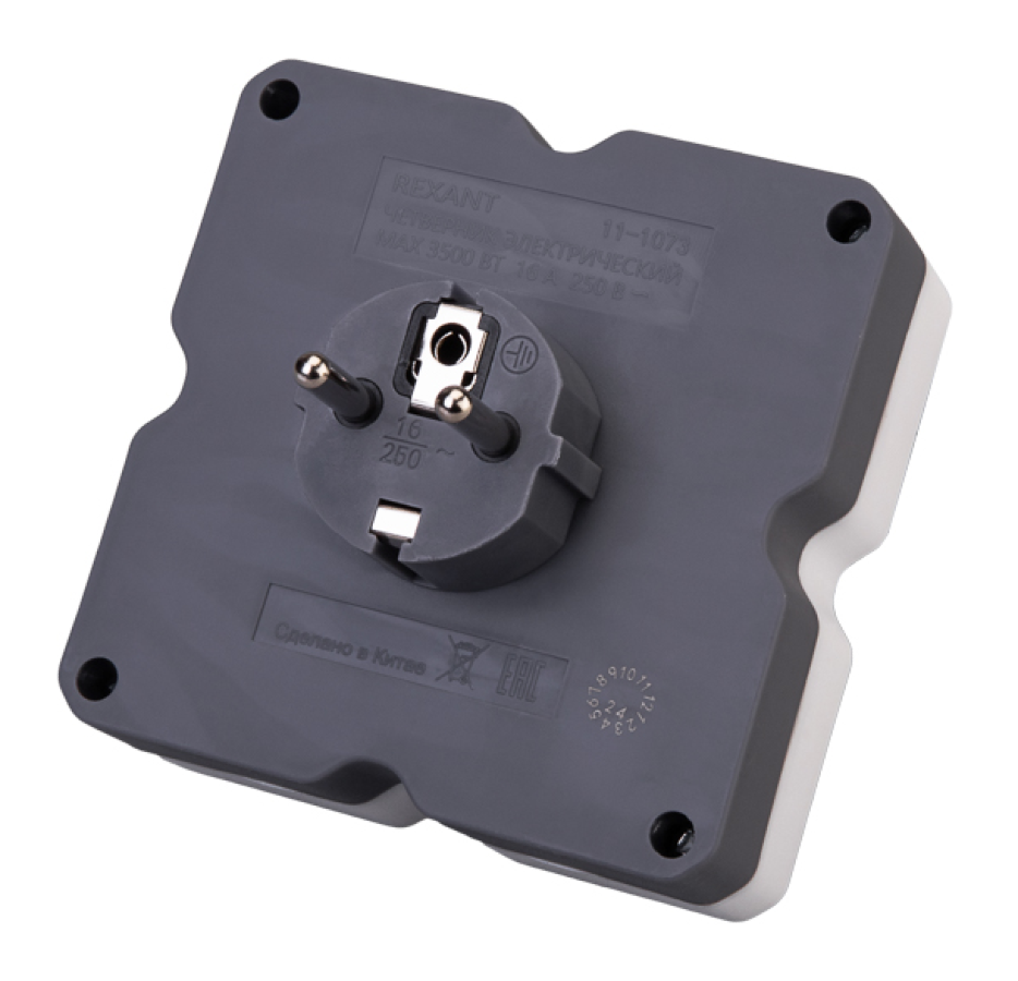 - Разветвитель электрический сетевой REXANT с заземлением, 4 розетки 16А белый, 11-1073 - 1шт.