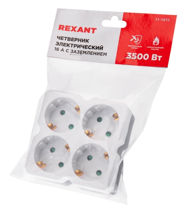 Разветвитель электрический сетевой REXANT / Рексант с заземлением, 4 розетки 16А белый, 11-1073