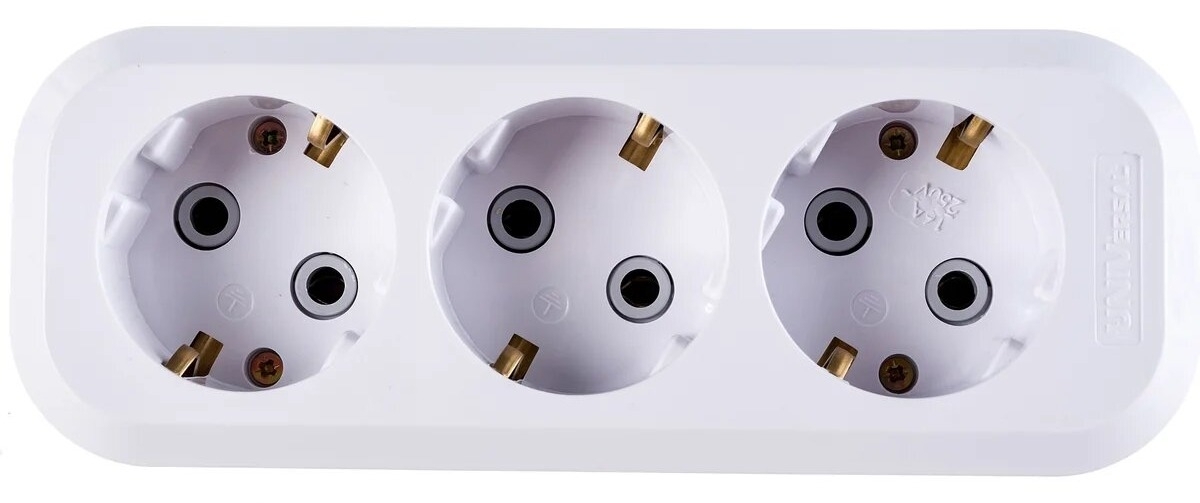 Колодка с заземлением UNIVersal E303 применяется для сбора удлинителя и подключения к стационарной розетке одновременно до трех бытовых электроприборов. Наличие заземляющих контактов обеспечивает повышенную электробезопасность соединений.