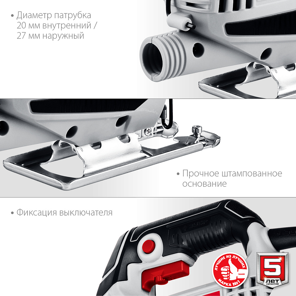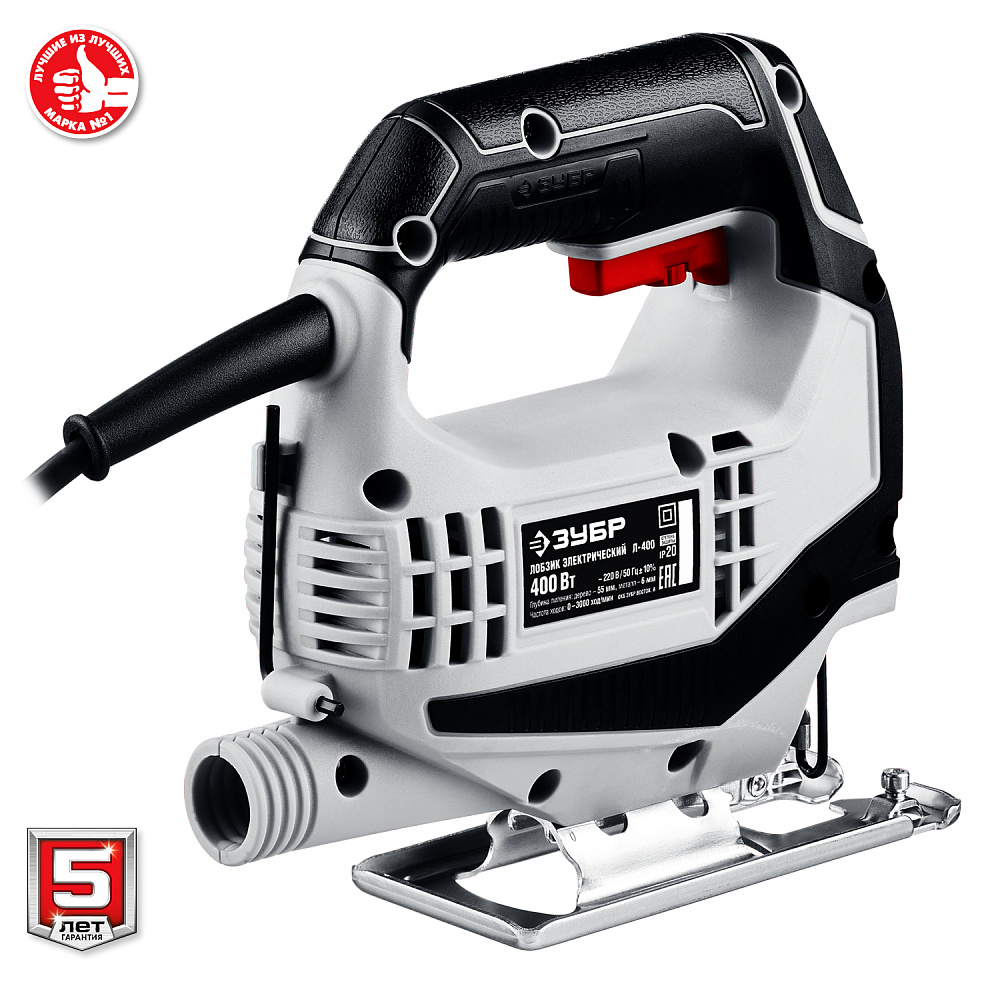 Конструкция электролобзика Зубр Л-400 со скобовидной ручкой обеспечивает уверенный контроль при ходе пилки. Мощность 400 Вт гарантирует стабильную производительность, а отсутствие маятникового механизма способствует чистоте реза.