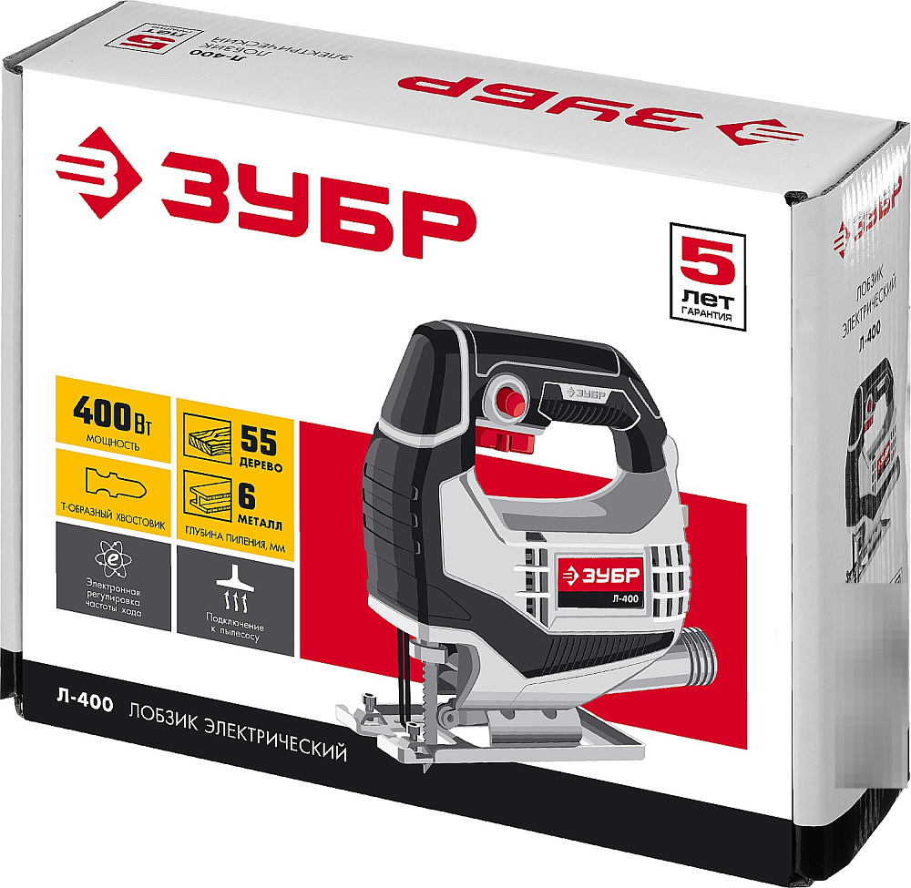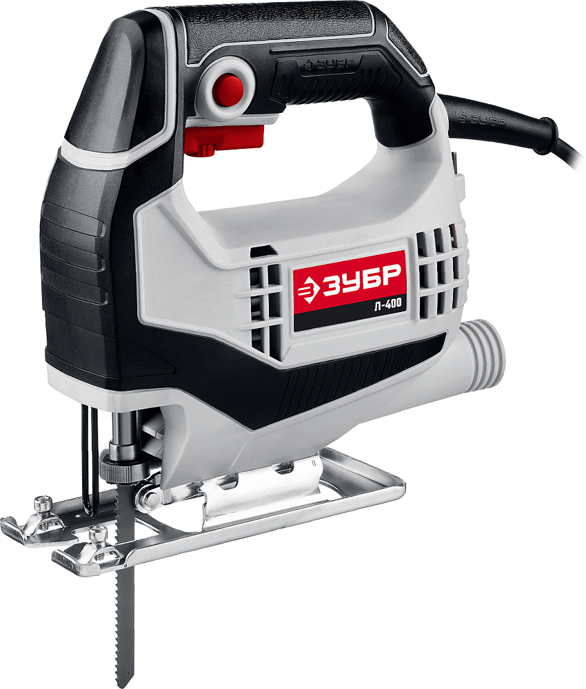 - Лобзик электрический Зубр Л-400 для пиления листовых материалов, 0-3000ход/мин, мощностью 400Вт - 1шт.