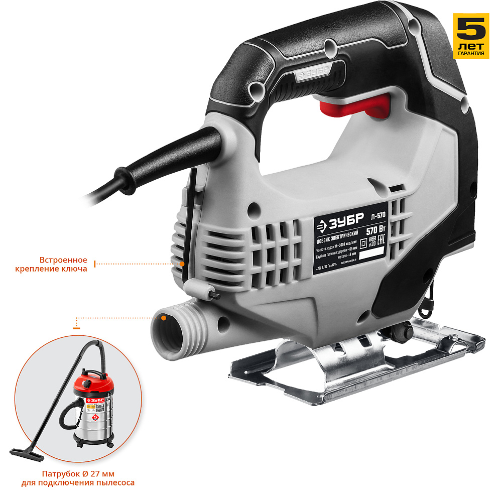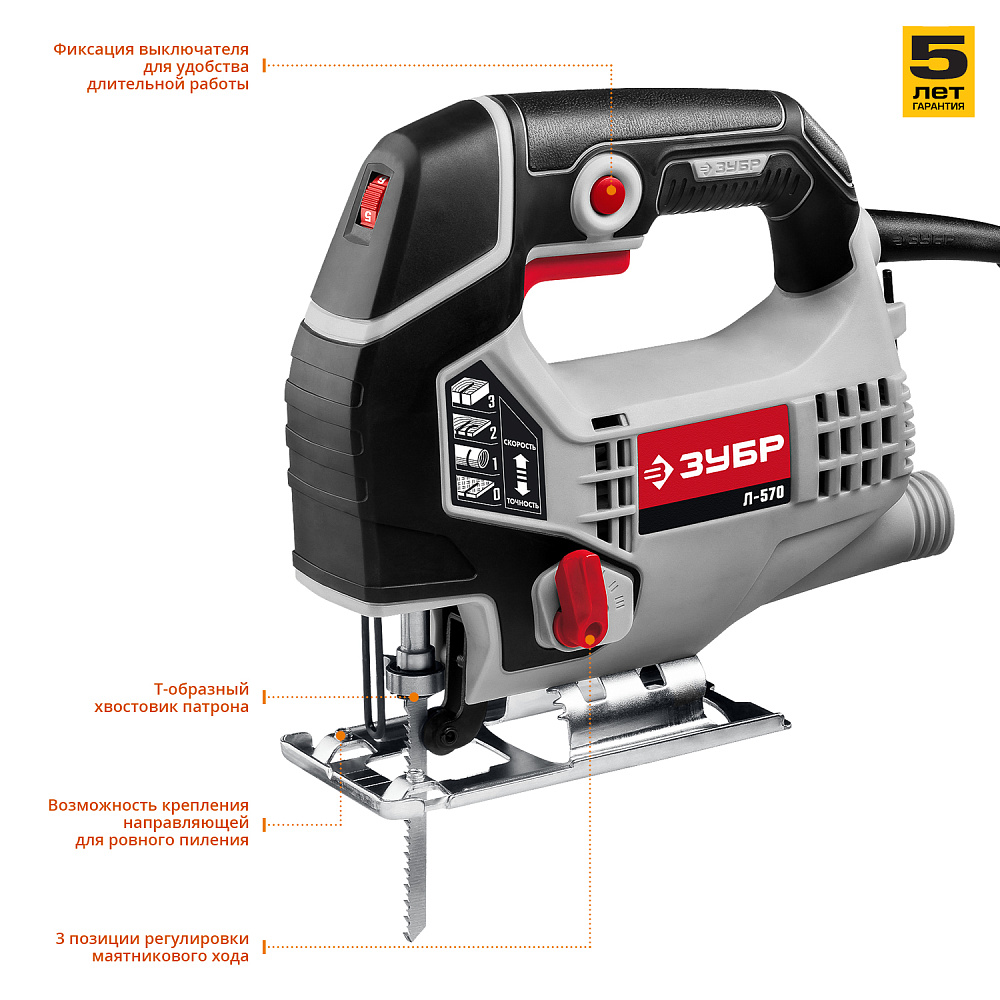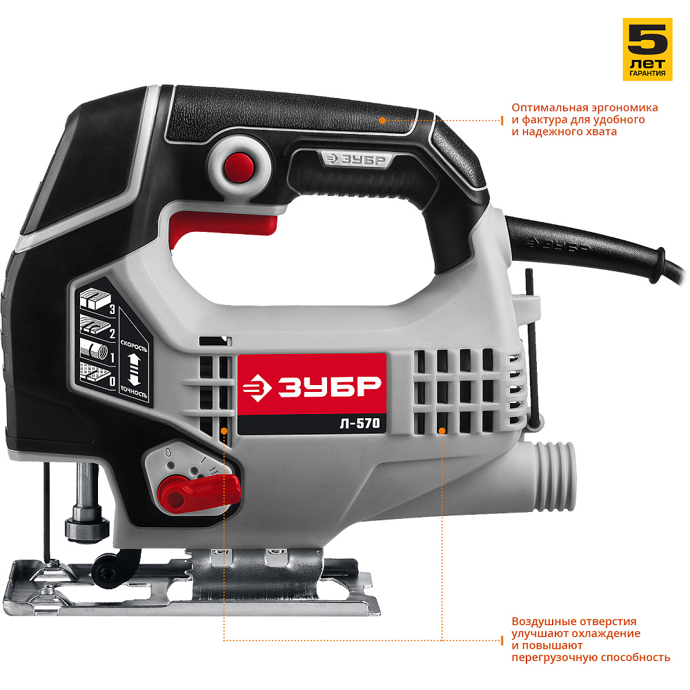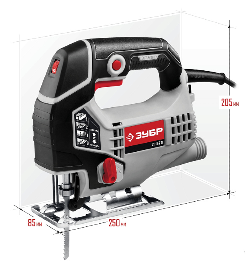 Лобзик электрический Зубр Л-570 для пиления листовых материалов, 0-3000ход/мин, мощностью 570Вт / инструменты