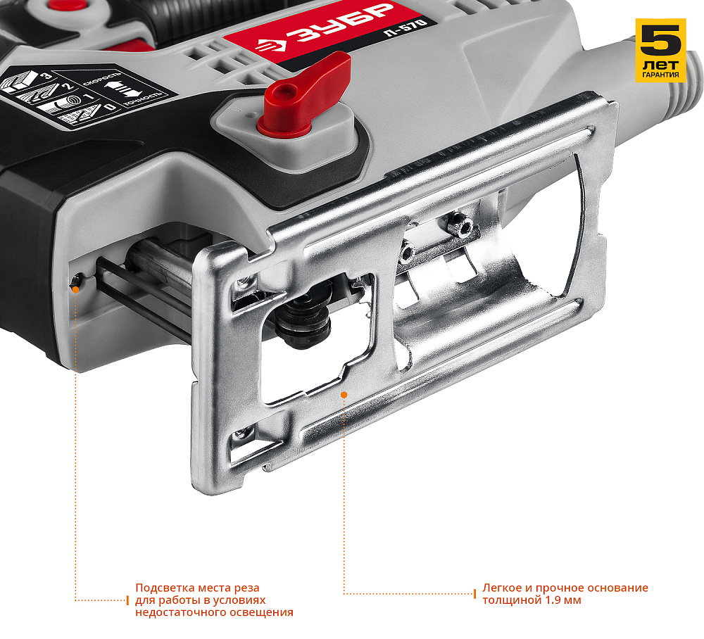 Конструкция электролобзика Зубр Л-570 со скобовидной ручкой обеспечивает уверенный контроль при ходе пилки. Мощность 570 Вт гарантирует стабильную производительность.