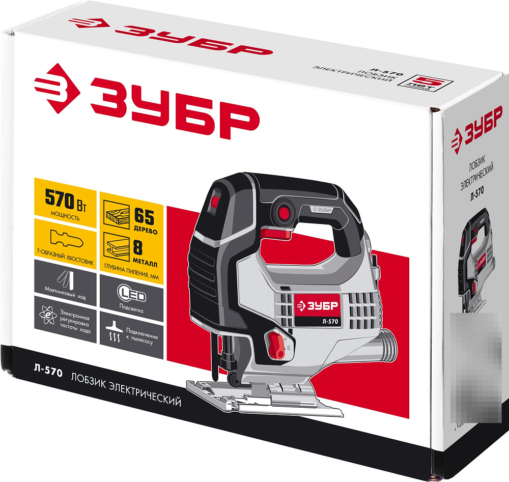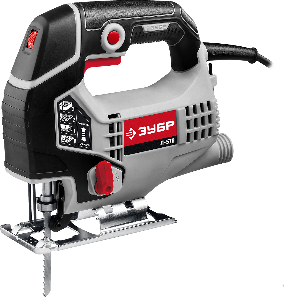 - Лобзик электрический Зубр Л-570 для пиления листовых материалов, 0-3000ход/мин, мощностью 570Вт - 1шт.