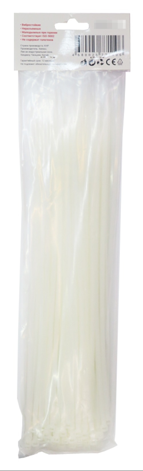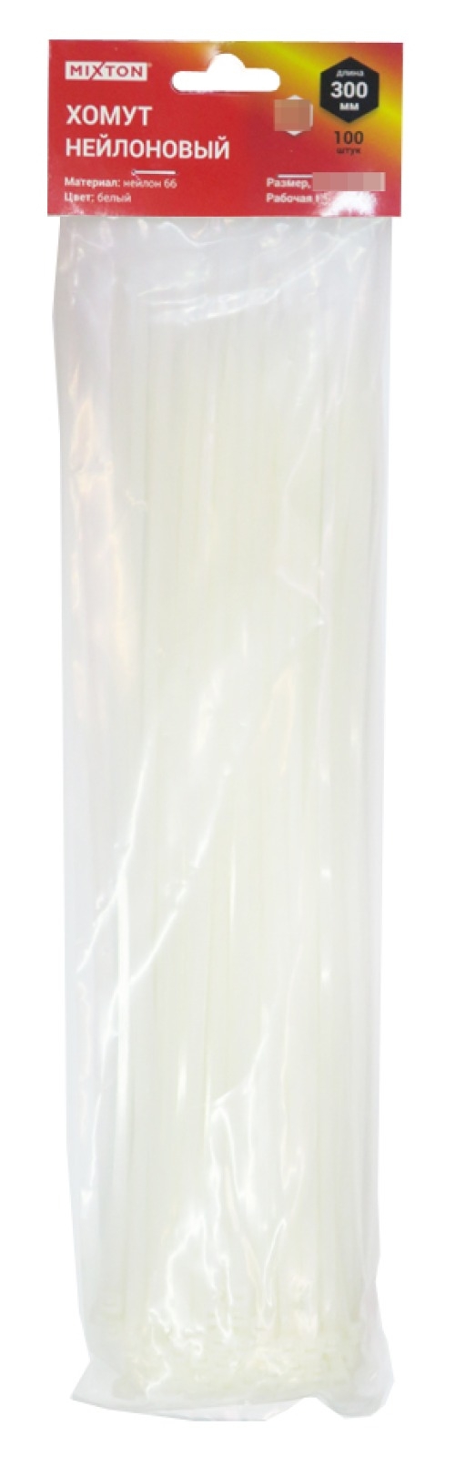 Кабельная стяжка, хомут MIXTON 4.6х300 - незаменимая вещь, при проведении электромонтажных работ внутри помещения, а главное удобная и удовлетворяющая соотношению цена-качество! Представляет собой гибкую полоску белого цвета из нейлона высокой прочности (полиамид-66) с замком на конце и служит как для простого бытового соединения проводов в пучки, так и для проведения монтажа структурированных кабельных систем. Полиамид-66 - это кристаллизующийся конструкционный материал с высокой твердостью и высокой механической прочностью: Хомут MIXton имеет длину - 300 мм и ширину - 4,6 мм для обеспечения необходимого объёма и прочности соединяемого пучка.