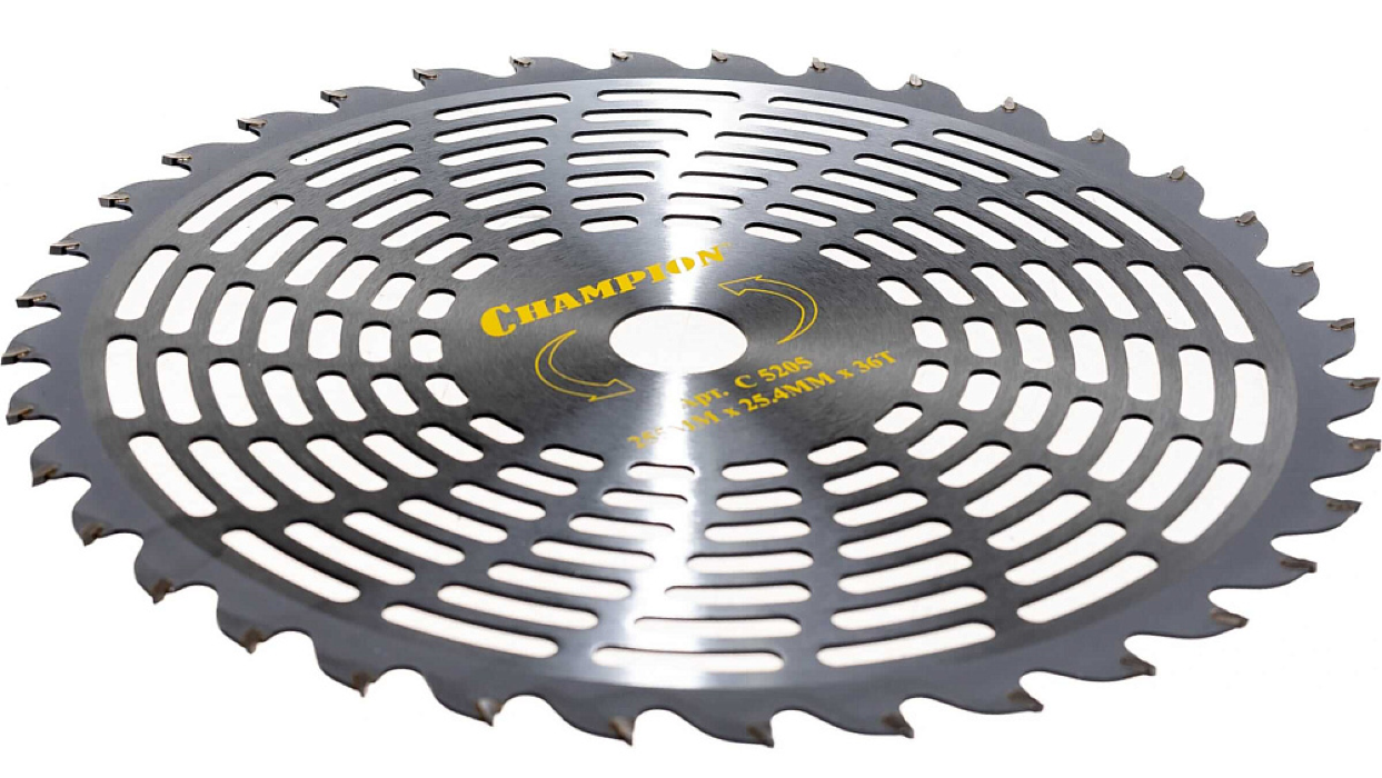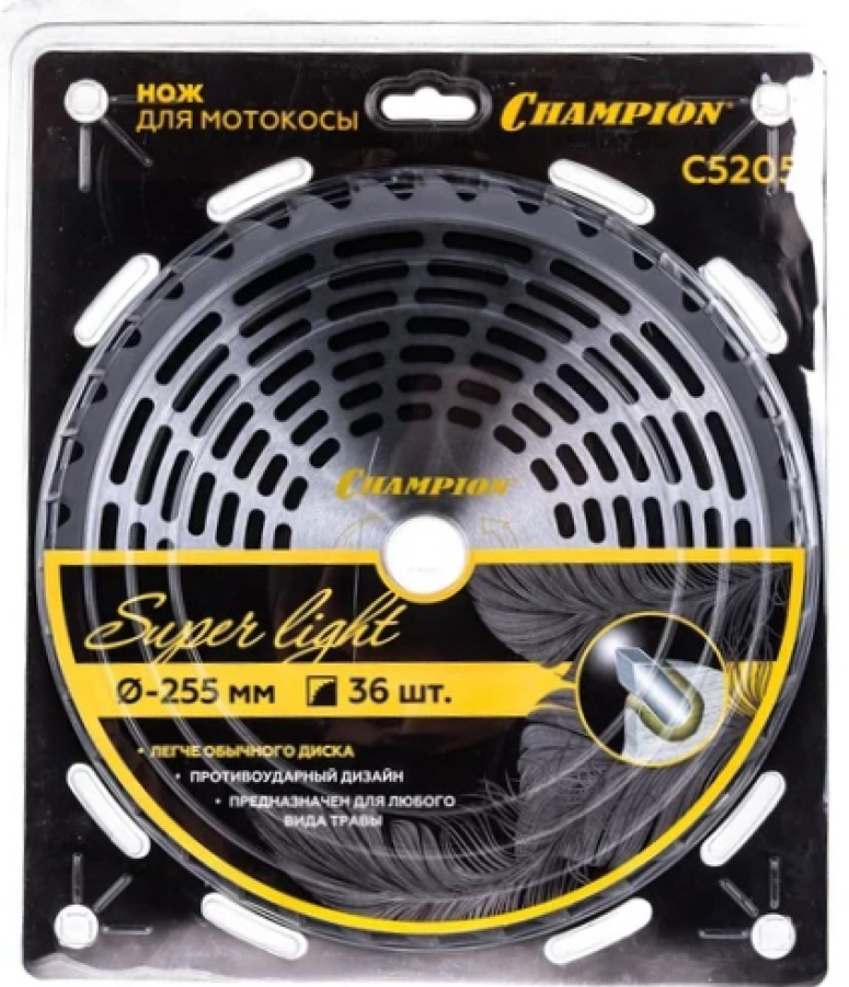 Нож для мотокосы Champion Super Light легко справляется с нагрузками, сохраняя остроту лезвий после множества использований.