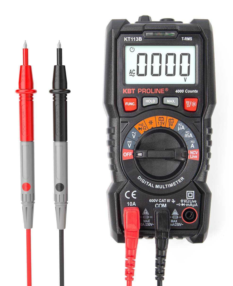 Мультиметр портативный цифровой КВТ KT 113В Proline с True RMS — универсальный прибор, который поможет Вам провести необходимые измерения в электротехнических цепях!