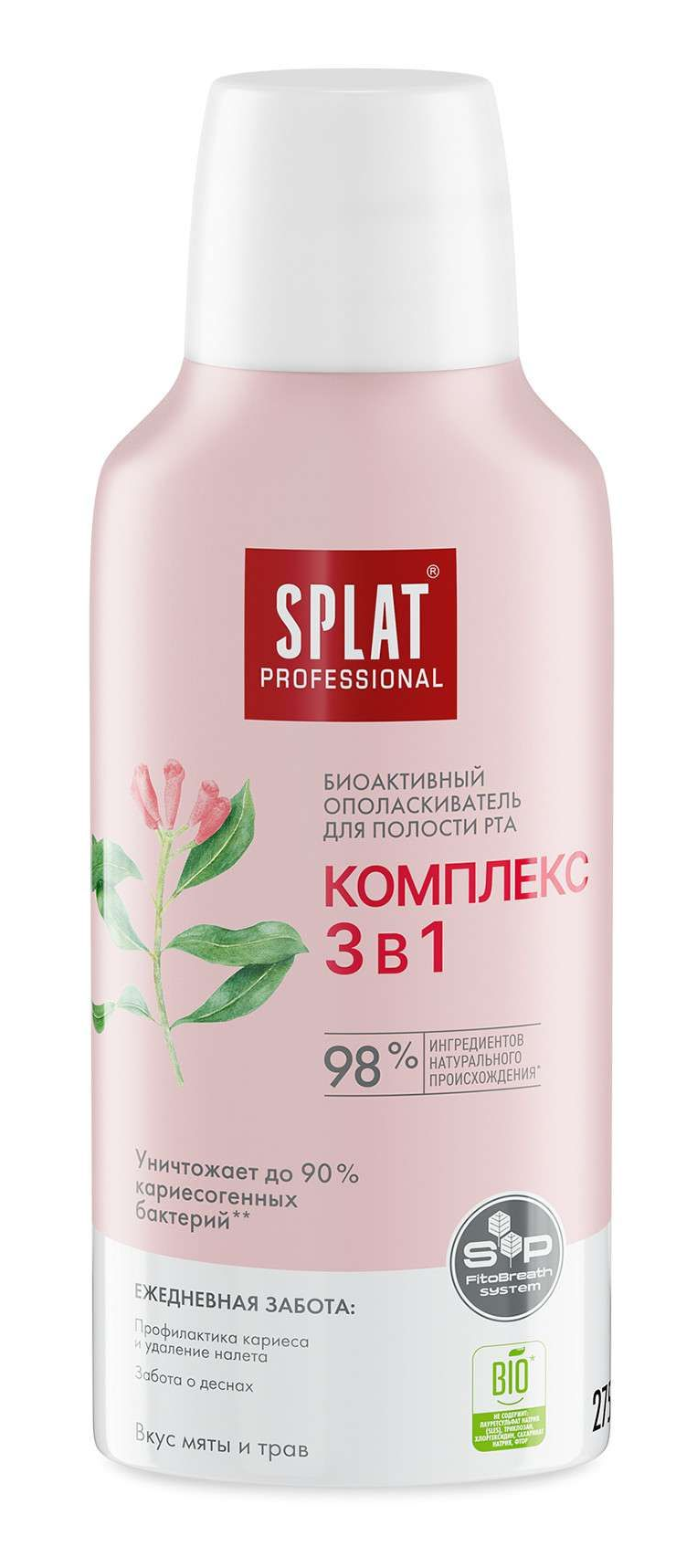 Профилактический ополаскиватель для полости рта Splat Professional биоактивный комплекс 3 в 1 со вкусом мяты и трав позволяет достичь максимальной защиты всей полости рта. Средство для защиты десен укрепляет десны, нормализует обменные процессы в мягких тканях полости рта.