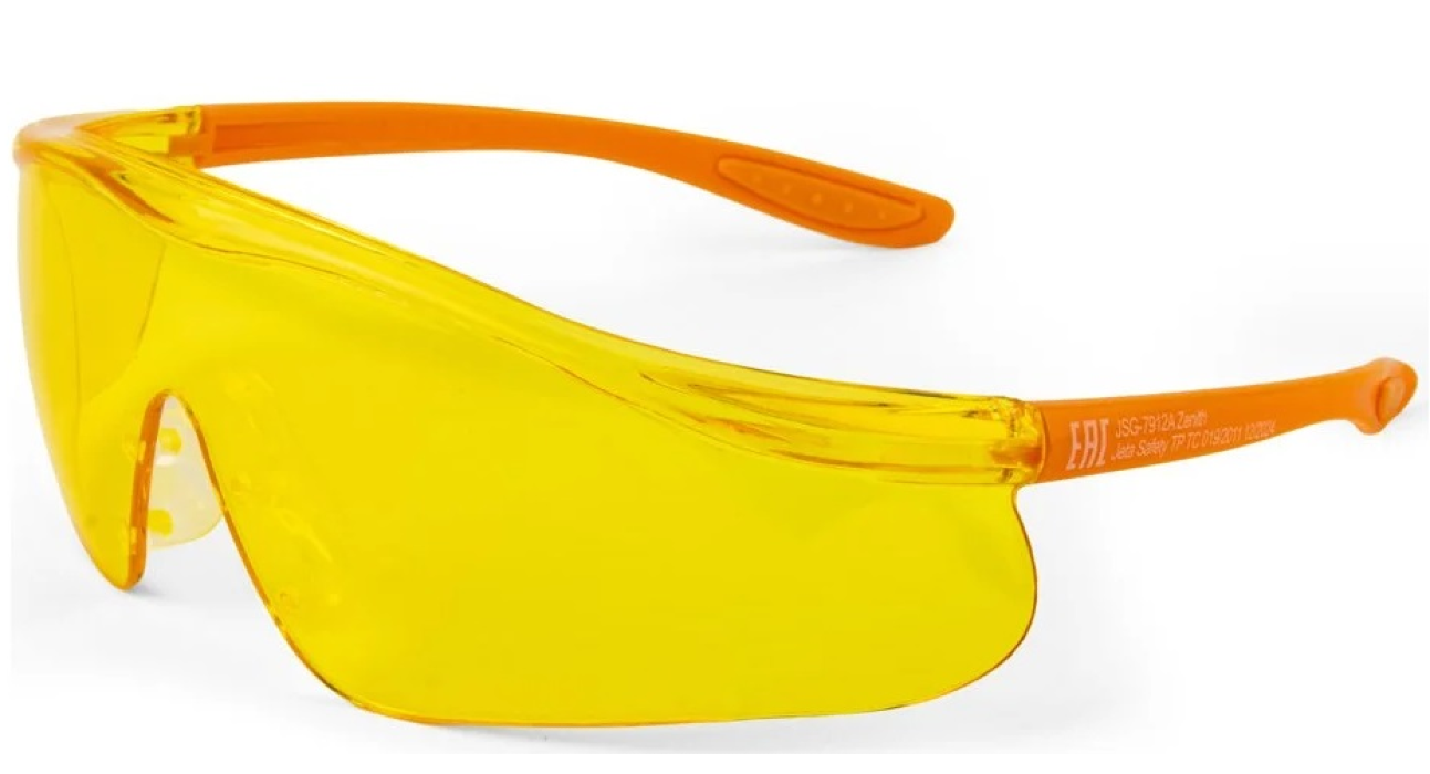 Очки защитные JSG-7915S Zenith от запотевания и царапин, открытого типа с боковой защитой, янтарные линзы.