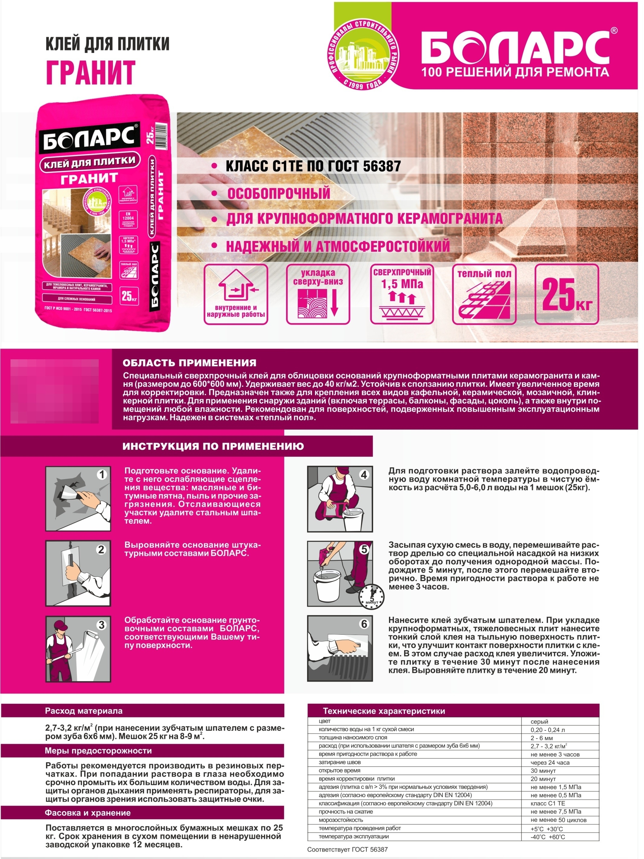 Клей плиточный Боларс Гранит — профессиональное решение, проверенное временем. Отличный выбор для самых требовательных задач!