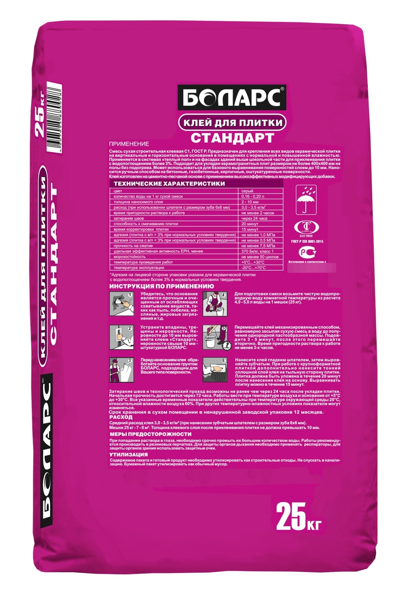 Клей плиточный Боларс Стандарт — профессиональное решение, проверенное временем. Отличный выбор для самых требовательных задач!