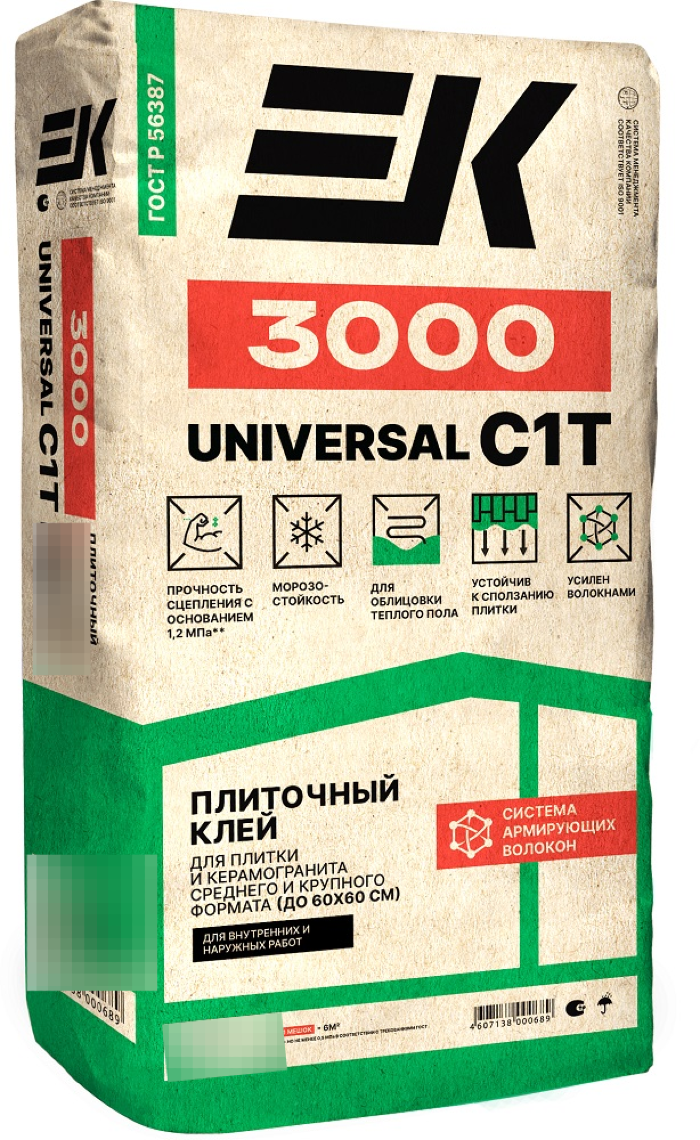 Клей плиточный ЕК 3000 Universal — профессиональное решение, проверенное временем. Отличный выбор для самых требовательных задач!