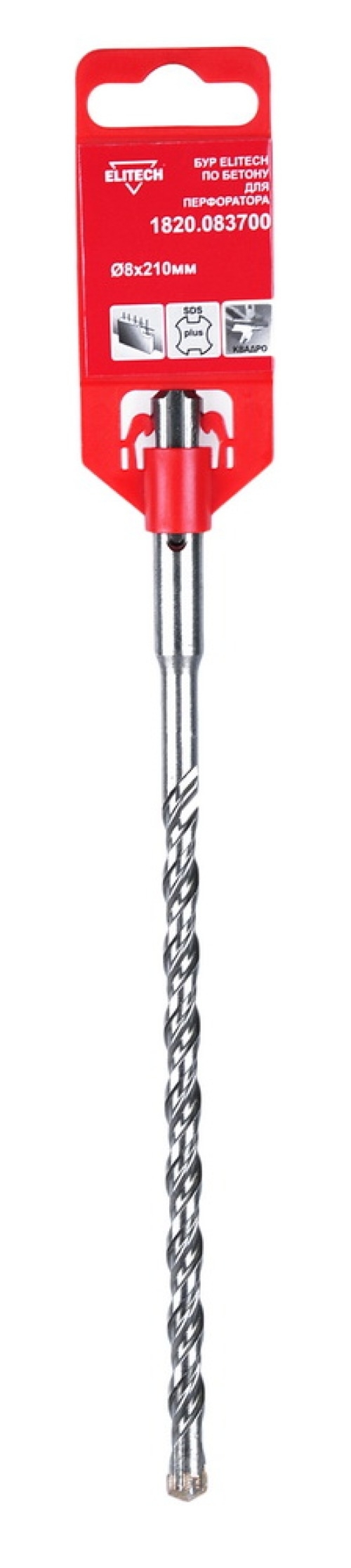 Бур Elitech / Элитек для перфоратора по бетону, двойная спираль, из металла, SDS-Plus, диаметр 8мм, длина 210мм / расходные материалы и оснастка