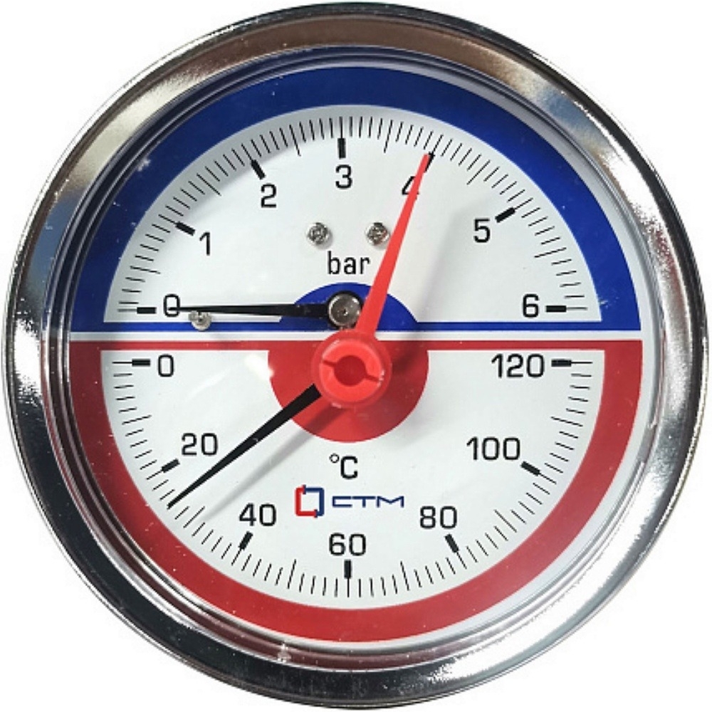 Термо-манометр СТМ14А06 аксиального подключения ¼», измерение до 6 бар, до +120° С предназначен для индикации температуры и давления на бытовых системах отопления и водоснабжения.