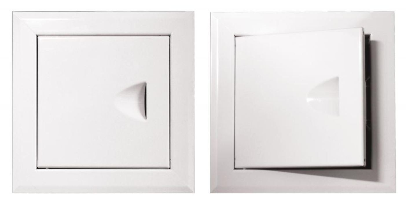Изделие изготовлено из прочного стального листа с порошковым покрытием, которое защищает от коррозии и механических повреждений. Даже в условиях повышенной влажности — в ванных, кухнях или прачечных — люк ревизионный сохраняет функциональность и эстетичный вид. Дверца плотно прилегает к раме, предотвращая попадание пыли и влаги внутрь технических полостей.