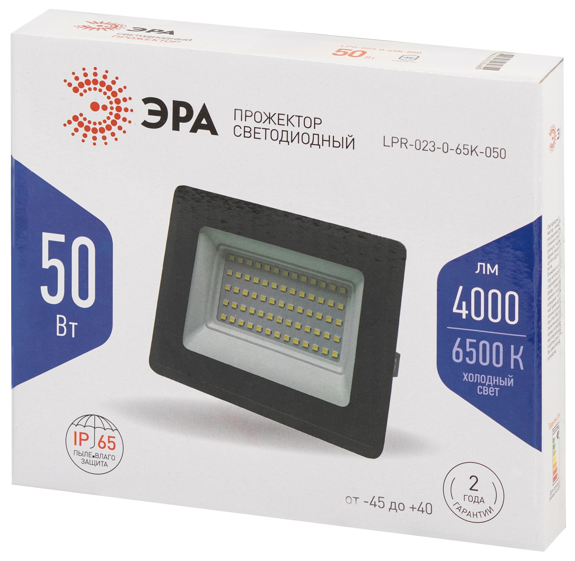 Основные характеристики прожектора для дома и улицы ЭРА LPR-023-0-65K-050: