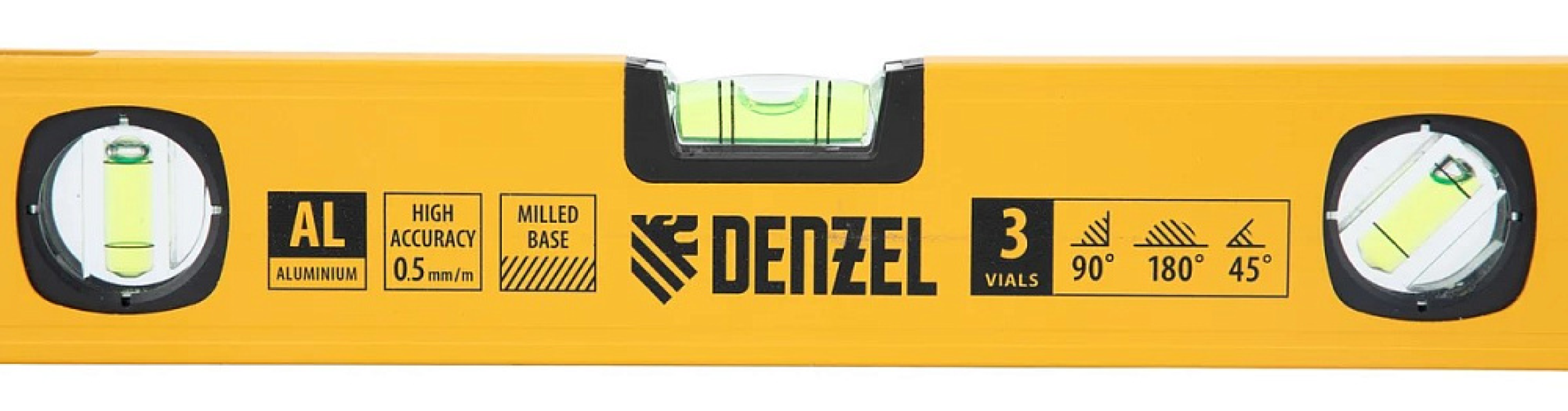 Корпус уровня строительного Denzel из алюминиевого сплава с эмалевым покрытием сочетает легкость с устойчивостью к коррозии и механическим повреждениям. Ребра жесткости и фрезерованные основания гарантируют стабильность измерений даже в условиях вибрации или неровного основания.