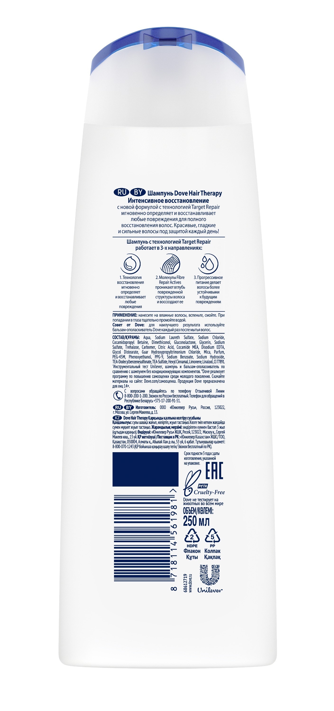 Без сульфатов / Подходит для ежедневного применения / Не тестируется на животных