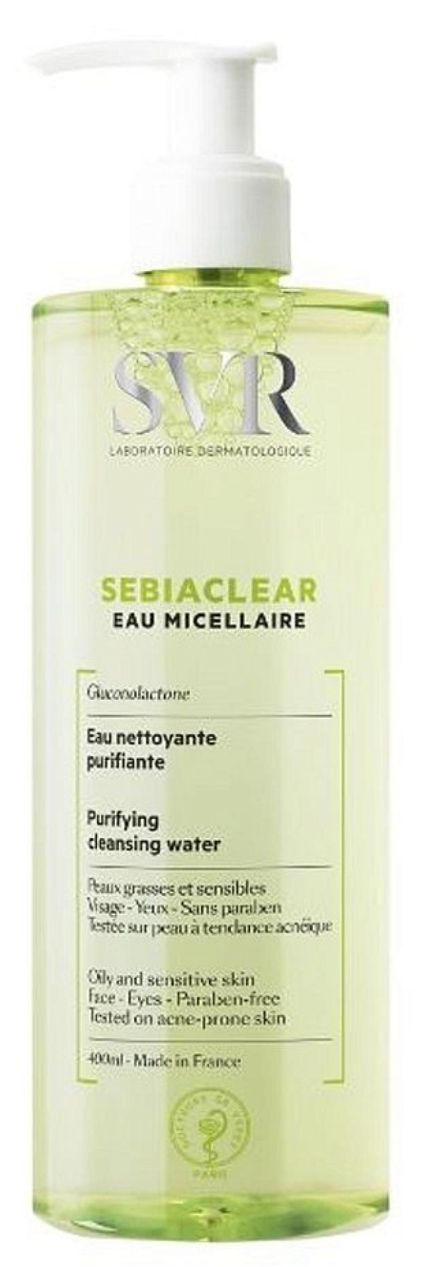 SVR Sebiaclear Мицеллярная вода для лица 400 мл подойдет обладательницам жирной и чувствительной кожи. Активные частицы косметического средства за одно движение устраняют косметику и загрязнения, обеспечивая бережный уход за лицом.