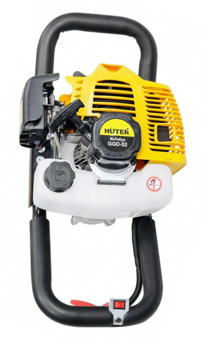 Полупрозрачный топливный бак позволяет контролировать уровень смеси во время процесса. Конструкция мотобура бензинового Huter GGD-52 предусматривает присоединение шнеков разного диаметра до 300 мм, что обеспечивает универсальность даже при работе с мерзлой землей или льдом.