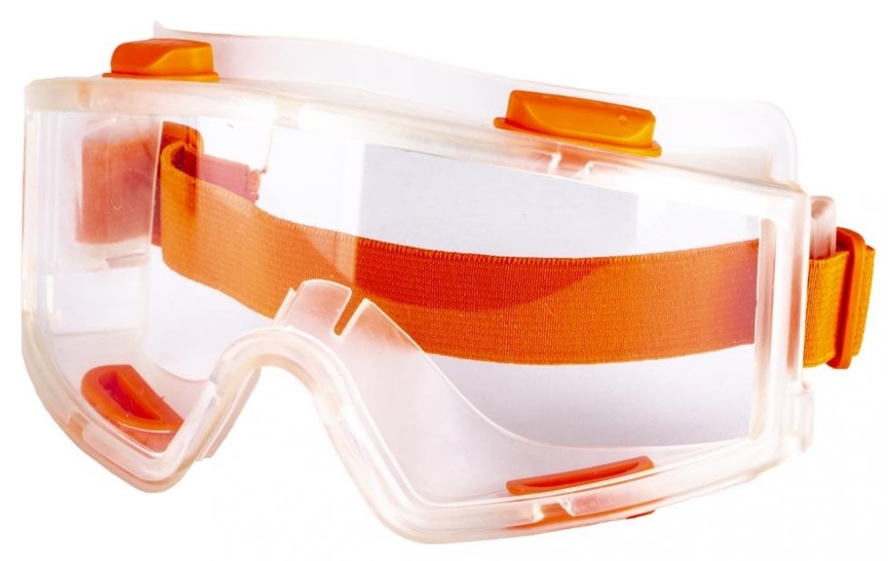 Защитные очки AMIGO Панорама, с оранжевой резинкой, 74252 защищают глаза от механических повреждений. Очки изготовлены из прозрачного поликарбоната. Конструкция очков обеспечивает оптимальную защиту со всех сторон. На корпусе изделия имеются специальные клапаны, создающие непрямую вентиляцию – очки не запотевают внутри. Благодаря регулируемой резинке можно изменить ее длину для комфортного использования.