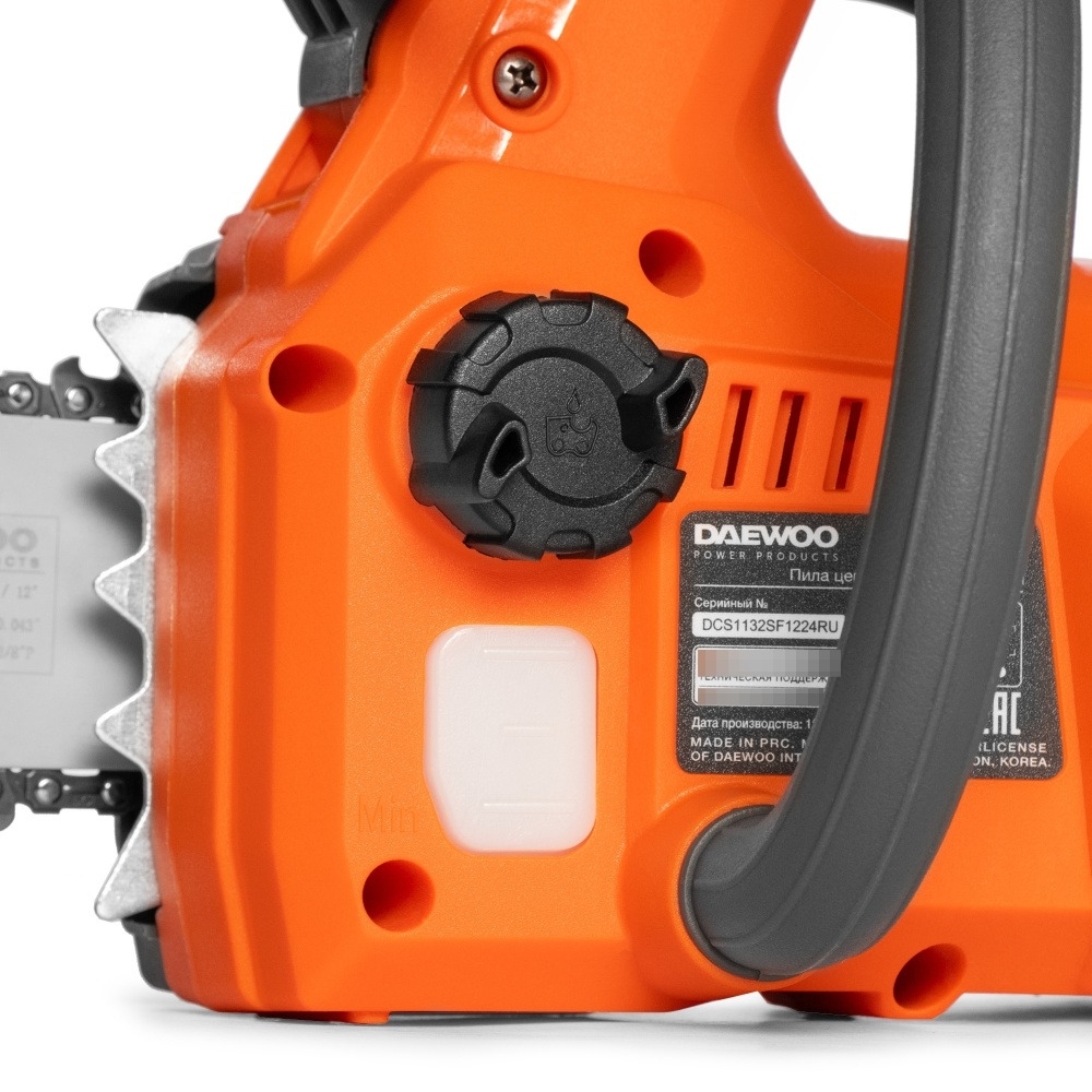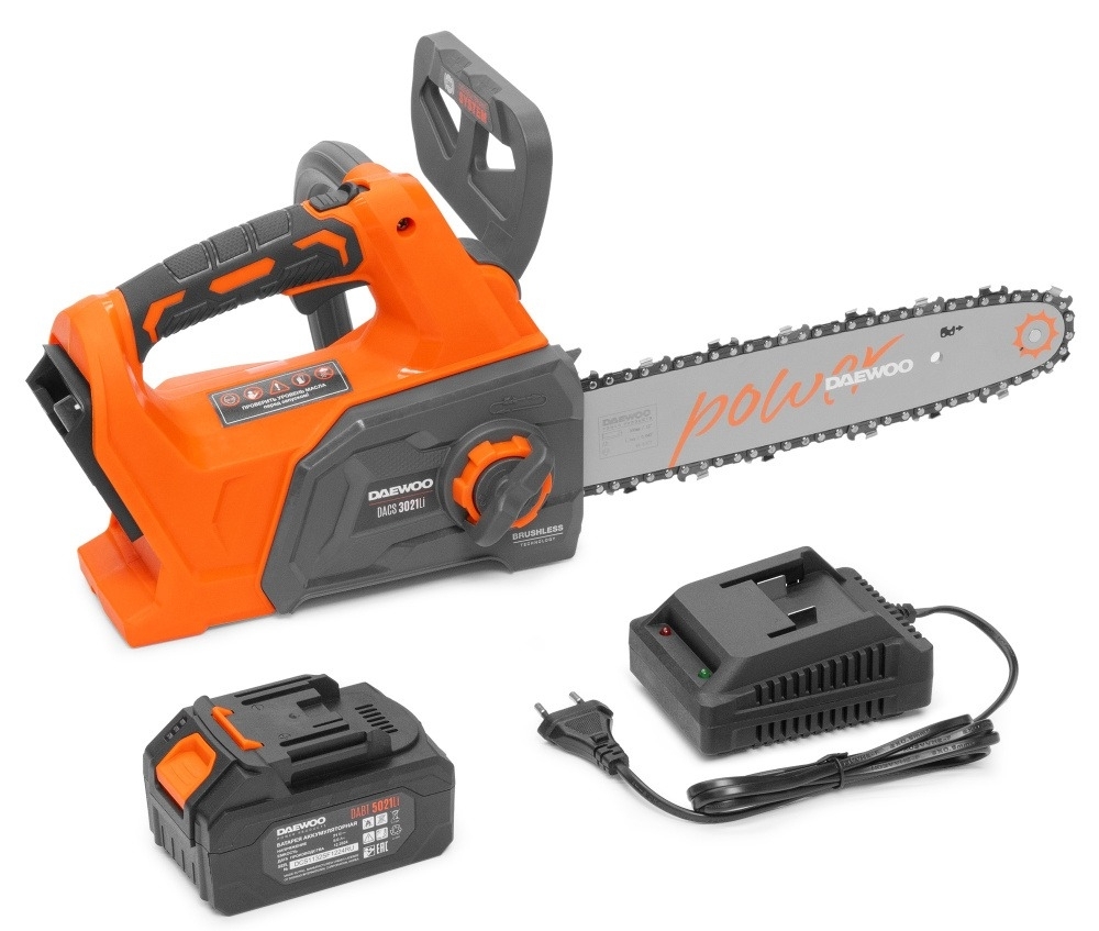Пила цепная аккумуляторная DAEWOO / Дэу DAKS 3021Li SET для пиления древесины, полотно 300мм, 3/8дюйма, 45 звеньев, Li-Ion, 5А/ч / электроинструмент