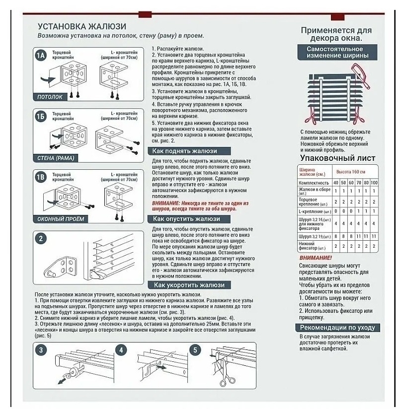 — Возможность самостоятельно изменить ширину и высоту жалюзи. .