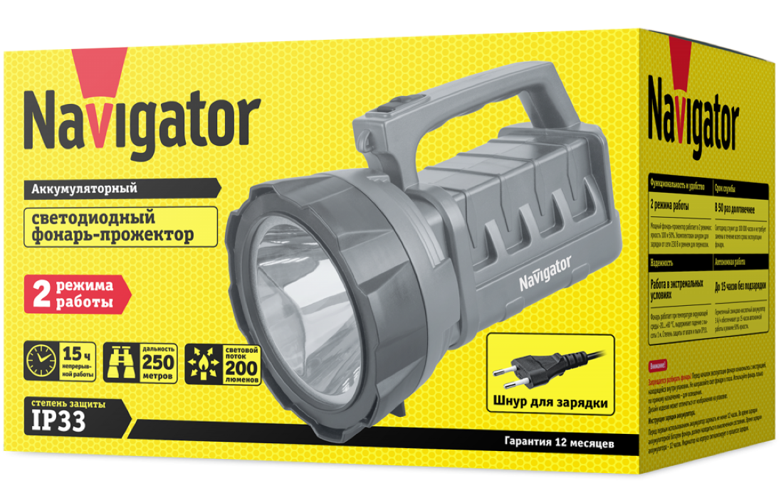 Несомненным плюсом фонаря Navigator NPT-SP14-ACCU является бесперебойная работа. Достаточно подзарядить фонарик в течение нескольких часов.