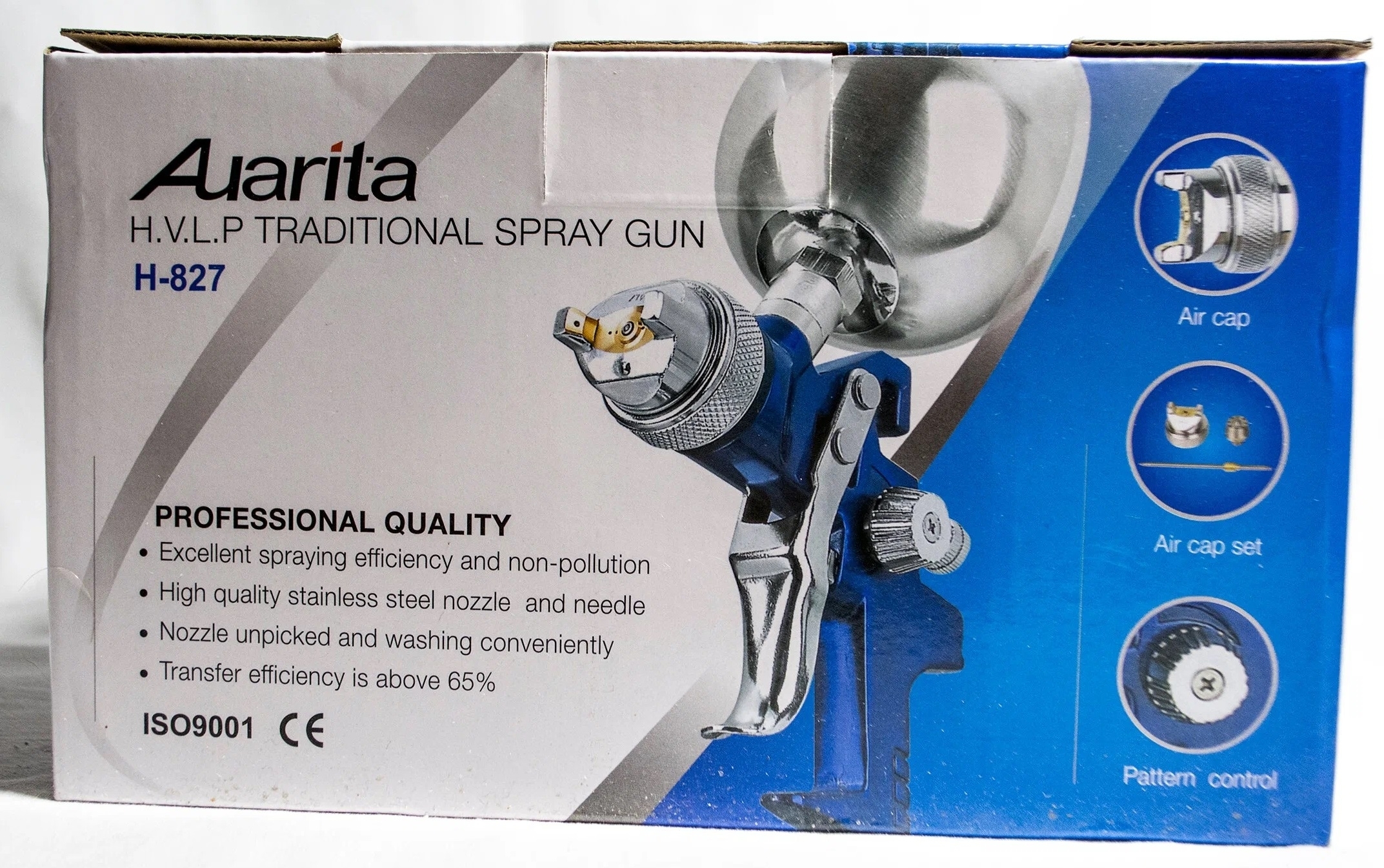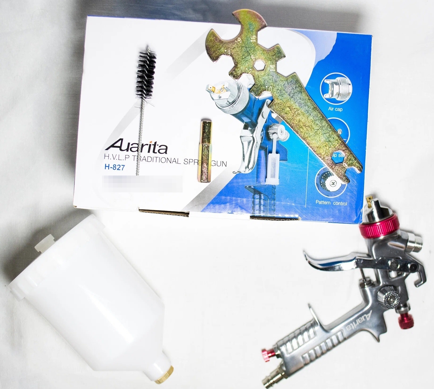 Краскопульт пневматический Auarita / Ауарита H-827 P с верхним расположением бачка, сопло 1.4мм, распыление HVLP, 600мл, 4бар / строительство и ремонт