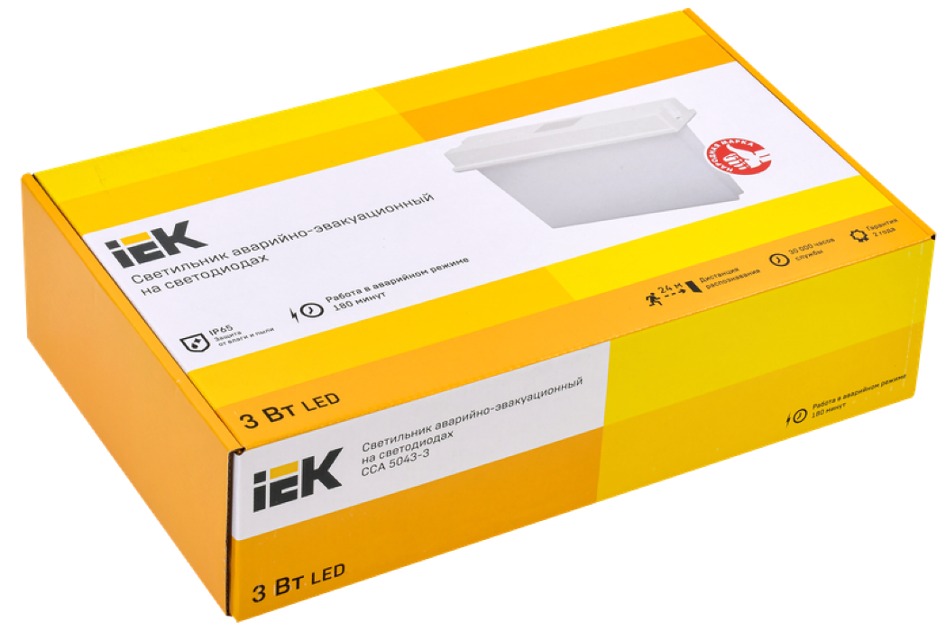 Аварийный светильник IEK ССА 5043-3, обеспечивает безопасность и эвакуацию людей при чрезвычайных ситуациях. Он предназначен для подсветки помещений, мест выхода, указывает направление движения.