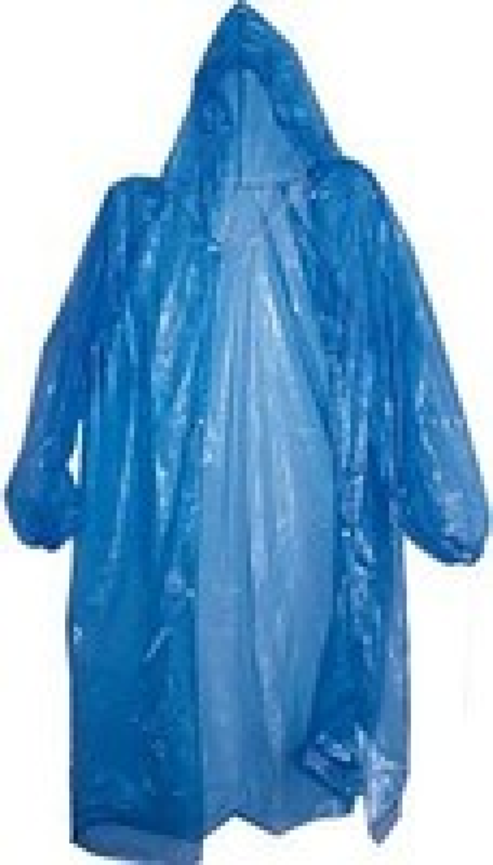 Полиэтиленовый, с капюшоном и рукавами.