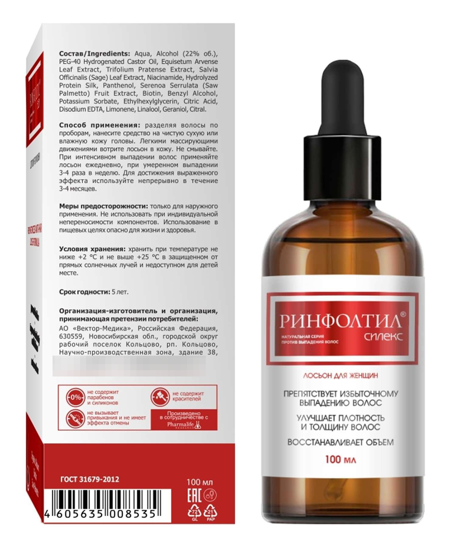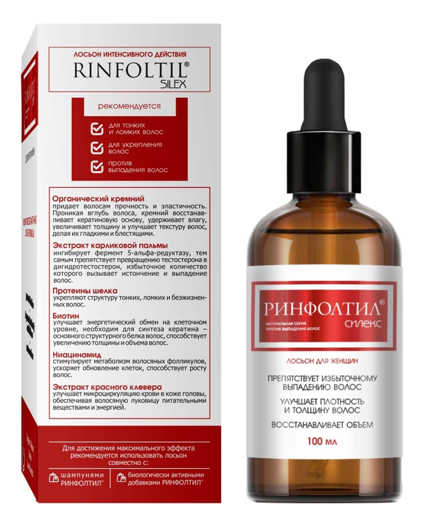 Лосьон от выпадения волос для женщин RINFOLTIL SILEX рекомендуется: для тонких и ломких волос, для укрепления волос, против выпадения волос. При регулярном применении натуральное и эффективное средство против выпадения волос РИНФОЛТИЛ препятствует избыточному выпадению волос, улучшает плотность и толщину волос, восстанавливает густоту и объем. Лосьон для волос РИНФОЛТИЛ СИЛЕКС для женщин разработан против выпадения и для роста волос. Действие лосьона направлено на увеличение толщины и плотности волос, восстановление объема, решение проблемы избыточного выпадения волос.